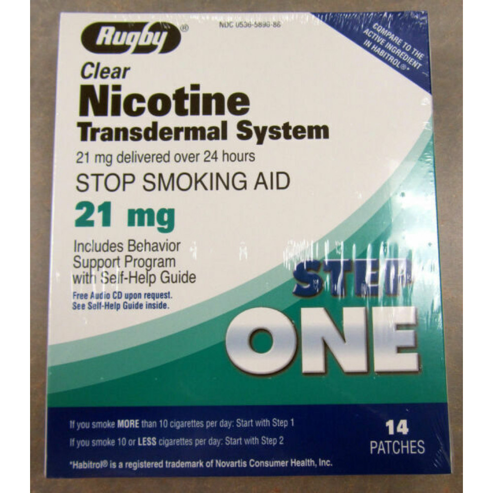 Rugby Clear Nicotine Transdermal Patches for Smoking Cessation 14 Patches 21 mg