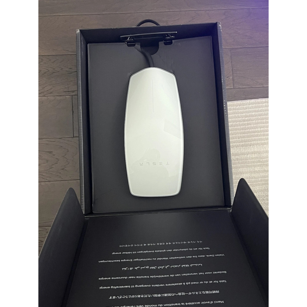 Зарядний пристрій виконаний у мінімалістичному дизайні Tesla — гладкий білий корпус із логотипом бренду та світлодіодним індикатором стану. Корпус виготовлено з міцного вологостійкого пластику з рейтингом NEMA 3R, що робить пристрій придатним для внутрішнього та зовнішнього встановлення.