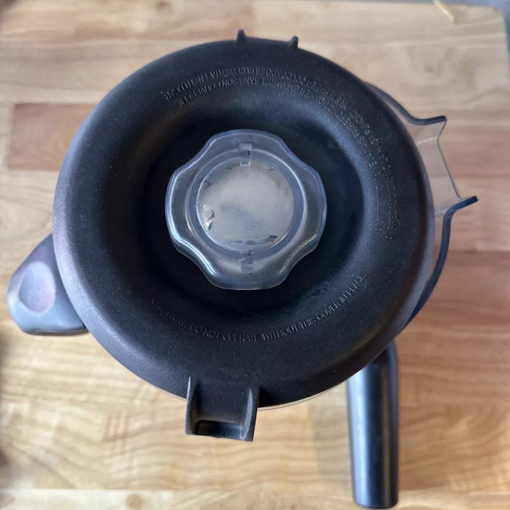 У комплекті йде кришка із силіконовим ущільненням, що щільно прилягає до країв глечика, запобігаючи витіканню рідини під час роботи. У центральній частині кришки передбачено невеликий отвір зі знімною заглушкою, що дає змогу додавати інгредієнти прямо під час змішування, не зупиняючи роботу блендера. Це особливо зручно при приготуванні складних рецептів, де потрібне поступове додавання продуктів.